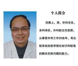 四:專家簡介外科:劉厚上,本科學歷,副主任醫(yī)師。長期從事普外科工作,有比較系統(tǒng)的醫(yī)學理論知識和較強的解決實際問題的能力,能夠處理本專業(yè)疑難病癥,目前能獨立完成肝左葉肝葉切除術(shù),胃癌、結(jié)腸癌根治,膽腸吻合、膽道成形術(shù),甲狀腺次全切除術(shù),甲狀腺癌根治術(shù),乳癌根治及改良根治術(shù)。能熟練的應用膽道鏡取出膽管內(nèi)的結(jié)石及膽道探查術(shù)。能較熟練的應用腹腔鏡開展膽囊切除術(shù)。對失血性休克、感染性休克、嚴重的多臟器損傷,急性出血壞死性胰腺炎進行搶救,取得了較高的成功率。曾先后在第四軍醫(yī)大學附屬二院、新疆維吾爾自治區(qū)人民醫(yī)院腹腔鏡科進修。內(nèi)科:吳毓美,內(nèi)科主任醫(yī)師。多次出席國際國內(nèi)學術(shù)會議,1971年曾參加中國援非醫(yī)療隊赴非洲工作。從醫(yī)40年,對各種內(nèi)科疾病的處理積累了豐富的經(jīng)驗,尤其擅長于呼吸內(nèi)科各種疾病如肺部感染、哮喘、肺間質(zhì)性病變、肺部腫瘤、呼吸衰竭、支氣管擴張、氣胸等病的診治。張俊元,內(nèi)科主任醫(yī)師。1964年畢業(yè)于蘇州醫(yī)學院,先后在北京醫(yī)院、武進醫(yī)院工作,為武進醫(yī)院神經(jīng)內(nèi)科創(chuàng)始人,并在任職期間將該科室創(chuàng)建為常州市重點?啤1982年開展腦脊液細胞學檢查,填補了常州市空白。1990年引進射頻溫控熱凝術(shù)治療三叉神經(jīng)痛,填補了省內(nèi)空白,已治愈三叉神經(jīng)痛患者一千余例,病人遍布華東區(qū)。撰寫省級論文19篇,完成科研三項,獲省市縣多項科技進步獎。朱龍南,內(nèi)科副主任醫(yī)師。曾任武進醫(yī)院大內(nèi)科、急診科主任。從事醫(yī)學臨床工作四十余年,對各種心血管疾病如高血壓、冠心病、糖尿病、風濕及類風濕性關(guān)節(jié)炎、胃腸疾病的診治頗有心得發(fā)表省級以上論文6篇,并撰寫急癥專著《內(nèi)科急腹癥》一部。朱輝,本科學歷,副主任醫(yī)師。1998年3月至1999年3月在四川大學華西醫(yī)院血液、內(nèi)分泌科學習。2004年3月至10月在北京大學糖尿病中心學習,獲結(jié)業(yè)證書。熟練掌握了內(nèi)分泌疾病的診療常規(guī),尤其對糖尿病的規(guī)范化治療有豐富的臨床經(jīng)驗。中醫(yī)科:李勝,本科學歷,主任中醫(yī)師。長期從事內(nèi)科醫(yī)療工作,擅長應用中西醫(yī)治療常見病、多發(fā)病,尤其是對于慢性胃炎、慢性腸炎、急性氣管炎、慢性支氣管炎、慢性腎炎、腎病綜合癥、慢性腎衰(早期),用中西醫(yī)結(jié)合治療積累了臨床經(jīng)驗。1977年獲“南京先進工作者”稱號,2002年獲“常州市優(yōu)秀中西醫(yī)結(jié)合工作者”稱號,曾先后12次獲“院先進工作者”“新技術(shù)項目獎”。曾參加編寫醫(yī)學著作1部,發(fā)表醫(yī)學論文10余篇,其中2篇獲“常州市優(yōu)秀科技論文獎”。婦產(chǎn)科:郭雨訊,大專學歷,副主任醫(yī)師。自1979年3月開始從事婦產(chǎn)科工作,積累了豐富的臨床經(jīng)驗,能熟練掌握婦產(chǎn)科常見病和多發(fā)病的診治及婦產(chǎn)科各種手術(shù)操作技術(shù),如全子宮切除術(shù)、宮外孕手術(shù)、卵巢囊腫切除術(shù)、剖宮產(chǎn)術(shù);以及如無痛人流等婦科小手術(shù)的操作和處理。曾先后于無錫第三人民醫(yī)院、常州婦幼保健醫(yī)院婦產(chǎn)科進修學習。五官科:朱建慧,本科學歷,副主任醫(yī)師,畢業(yè)于蘇州大學臨床醫(yī)學系。從事眼耳鼻喉科工作二十多年,曾先后在江西醫(yī)學院附屬第二醫(yī)院眼科及常州市第一人民醫(yī)院眼耳鼻喉科進修,對眼耳鼻喉科的常見病、多發(fā)病的診斷和治療積累了豐富的臨床經(jīng)驗,頗受患者好評。