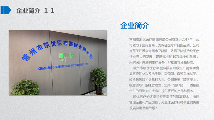 常州市凱優(yōu)醫(yī)療器械有限公司成立于2017年,是一家專注于研究、開發(fā)、生產(chǎn)及銷售喂食類醫(yī)療耗材、醫(yī)用泌尿類耗材、婦科類檢查器械、口罩等產(chǎn)品于一體的現(xiàn)代化企業(yè)。公司坐落于常州市天寧區(qū)鄭陸鎮(zhèn)一天寧高新區(qū)。我們的產(chǎn)品先后通過FDA、CE、ISO等認(rèn)證。 公司成立至今,始終秉承“顧客至上,銳意進(jìn)取”的經(jīng)營理念,先后獲得守合同重信用企業(yè)、國家質(zhì)量服務(wù)信譽(yù)AAA級企業(yè)等榮譽(yù)。我們擁有經(jīng)驗豐富的銷售團(tuán)隊、各類專業(yè)的技術(shù)人才、熟練操作的員工以及數(shù)臺國內(nèi)外先進(jìn)的設(shè)備,敦力于為客戶提供最優(yōu)質(zhì)的服務(wù)和支持。我們以先進(jìn)的技術(shù)和科學(xué)的管理為依托,堅持實施品牌戰(zhàn)略,在競爭激烈的醫(yī)療器械行業(yè)內(nèi),我們注重追求自主設(shè)計研發(fā),己累計推出自主研發(fā)專利十五余項。公司成立短短幾年的時間已經(jīng)實現(xiàn)了跨越式發(fā)展,產(chǎn)品遠(yuǎn)銷東南亞、東歐、北美等地區(qū),贏得,國內(nèi)外客戶的一致贊譽(yù)。 長風(fēng)破浪會有時,直掛云帆濟(jì)滄海。凱優(yōu)醫(yī)療如同翱翔的雄鷹,迎著希望,展翅飛翔。面對新的機(jī)遇與挑戰(zhàn),凱優(yōu)人定會憑借工匠精神,持續(xù)改進(jìn)、不斷創(chuàng)新,為企業(yè)在激烈的市場競爭中以質(zhì)取勝,確保行業(yè)領(lǐng)先地位,最終實現(xiàn),成為醫(yī)療耗材行業(yè)引領(lǐng)者的企業(yè)愿景。 凱優(yōu)醫(yī)療,因為專注所以卓越。