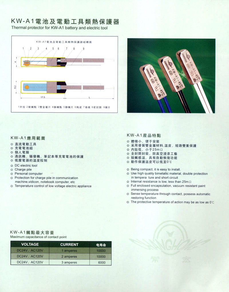 常州市常宏同力電器有限公司位于全國溫度開關(guān)(熱保護器)、KSD溫控器的生產(chǎn)基地--江蘇常州,公司主要生產(chǎn)各類熱敏金屬突跳式熱保護器及KSD溫控器,產(chǎn)品通過了UL及CUL認證、VDE認證、CB測試、CQC認證、SGS環(huán)保測試。產(chǎn)品廣泛應(yīng)用于空調(diào)、冰箱、洗衣機、風(fēng)扇、鎮(zhèn)流器、變壓器、鎳氫、鎳鉻、鋰離子、鋰聚合物等可充電電池組、電動工具、吸塵器、電加熱器具(電熱毯、直發(fā)器、發(fā)熱片、電加熱棒等)、油煙機、按摩器、開關(guān)電源等領(lǐng)域。公司具有多年研發(fā)經(jīng)驗的工程師,具備10多年大型企業(yè)管理經(jīng)驗的生產(chǎn)主管,以及擁有多年和大型家電企業(yè)合作配套的經(jīng)驗和條件,完善的銷售服務(wù)網(wǎng)絡(luò)。公司質(zhì)量管理體系規(guī)范,能為您提供專業(yè)化的技術(shù)支持和銷售服務(wù),傾力打造國內(nèi)通用型熱保護器和超小型熱保護器的金牌企業(yè)。 公司長期制造和銷售各種溫度開關(guān)、熱保護器、熱敏器件產(chǎn)品,在產(chǎn)品的技術(shù)和生產(chǎn)方面積累了豐富的經(jīng)驗,一直為客戶提供完美而高效的服務(wù)。優(yōu)良的質(zhì)量,絕對競爭力的價格使得我司產(chǎn)品暢銷于同行市場,并與國內(nèi)眾多知名家電廠家建立了密切的戰(zhàn)略伙伴關(guān)系。公司員工為能同全世界的客戶和朋友建立長期的合作關(guān)系傾盡全力。 公司采用一流的生產(chǎn)設(shè)備、工藝技術(shù)和管理流程等手段,使得公司擁有強大的OEM生產(chǎn)加工能力,有為國外同類企業(yè)提供OEM加工。公司堅信憑借多年的技術(shù)創(chuàng)新和生產(chǎn)經(jīng)驗、周到的售前售后服務(wù)將會使客戶的采購更加便捷、實惠。公司將本著“適應(yīng)國際競爭,建設(shè)國際化企業(yè)”的經(jīng)營目標(biāo),積極奮斗。 以先進的技術(shù)、現(xiàn)代化的管理,為您提供優(yōu)質(zhì)的產(chǎn)品; 合理的價格、最滿意的服務(wù)期待與各界同仁真誠的合作;可靠 的質(zhì)量、完善的售后服務(wù)是本公司不斷前進的原動力; 勇于進取、創(chuàng)造價值、回報用戶是我們企業(yè)永遠的追求。 誠信、高效、服務(wù)是公司永久的理念,并將堅持到底!