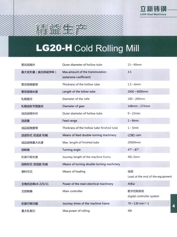 常州立新特種耐熱鑄鋼有限公司,地處江南水鄉(xiāng)古鎮(zhèn)一武進橫林,是全國著名的強化地板之鄉(xiāng)。 本廠歷史悠久,技術(shù)力量雄厚,制造設(shè)備齊全。擁有先進的鑄造生產(chǎn)線,1噸中頻感應加熱熔煉電爐;先進的化學分析設(shè)備和大型機床加工、埋弧堆焊機、電熱回火爐、拋丸機等。 公司依靠科學進步,結(jié)合國外先進技術(shù)和國內(nèi)需求,自行設(shè)計制造LGl5一H、LG20一H、LG30一H、LG40一H、LG50一H、LG60一H、LGl20一H型系列長行程環(huán)孔冷軋管機。對不銹鋼、碳鋼和有色金屬大減徑、大減壁軋制。亦可生產(chǎn)耐熱鑄鋼件、普通鑄鋼件、大型離心澆鑄件、大型軋輥堆焊等,同時可以為客戶加工生產(chǎn)大中型硬齒面齒輪及各類機械零部件備件。 公司另有焊管生產(chǎn)線1條,可生產(chǎn)直徑8—32mm的精密焊管、矩形管、冷拔管。應用于各種燈具生產(chǎn)及其它工業(yè)生產(chǎn)。 本公司注重產(chǎn)品質(zhì)量,在同行業(yè)中率先通過了IS09000質(zhì)量體系認證,并以優(yōu)良的服務取信于客戶。我們的宗旨是:質(zhì)量第一、信譽第一、價格合理、交貨及時,竭誠歡迎國內(nèi)外客戶來人來函聯(lián)系洽談業(yè)務、光臨指導!