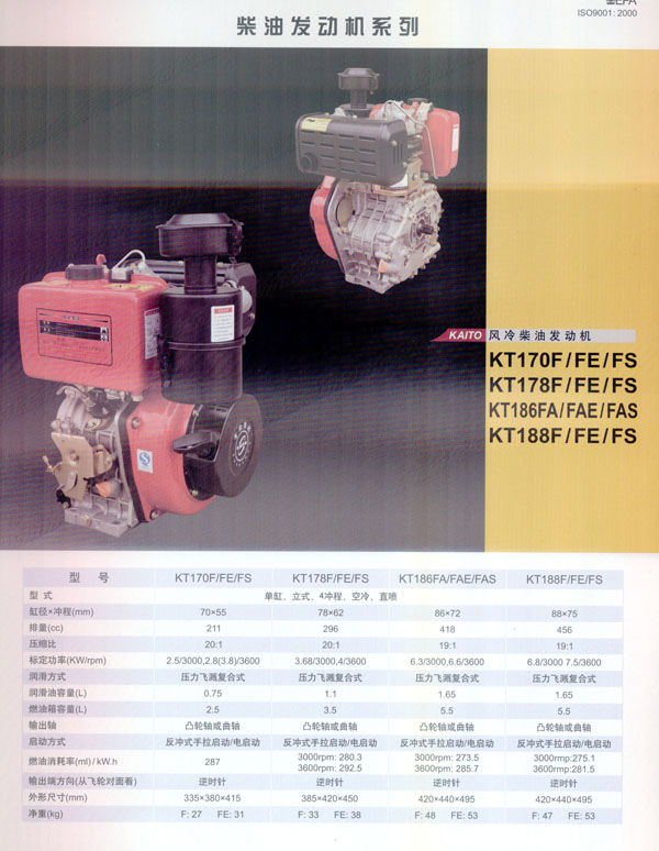 常州常柴集團(tuán)凱拓電動(dòng)機(jī)械有限公司是常柴集團(tuán)所屬,集自主研發(fā)設(shè)計(jì)及生產(chǎn)的出口型產(chǎn)業(yè)基地! 〕2窦瘓F(tuán)是一家擁有近一萬名在職員工的國(guó)有大型企業(yè),年均產(chǎn)值近三億美元,平均出口總額近八千萬美元,同時(shí)也是中國(guó)內(nèi)地五百?gòu)?qiáng)企業(yè)之一! 〕2窦瘓F(tuán)凱拓電動(dòng)機(jī)械有限公司的主要產(chǎn)品流水線基于日本YAMMAR型超級(jí)風(fēng)冷柴油發(fā)動(dòng)機(jī),以及其配套發(fā)電機(jī)組,水泵機(jī)組和數(shù)碼變頻發(fā)電機(jī),我司目前擁有常柴集團(tuán)及凱拓品牌的知名商標(biāo)使用權(quán),旗下所有分廠如機(jī)械加工廠、鑄造廠以及發(fā)動(dòng)機(jī)廠等生產(chǎn)基地都通過了ISO9001-2000質(zhì)量管理體系認(rèn)證。我司自主品牌凱拓柴油發(fā)電機(jī)組KT5000SE,KT5000LE,數(shù)碼變頻發(fā)電機(jī)KT1000Ti以及柴油發(fā)動(dòng)機(jī)186F均通過德國(guó)TUV公司的CE認(rèn)證,美洲EPA認(rèn)證,因此出口量很大,近年來公司產(chǎn)品已遠(yuǎn)銷美洲、歐洲、非洲以及東南亞國(guó)家和地區(qū)! ∫劳谐2窦瘓F(tuán)的領(lǐng)先技術(shù),強(qiáng)有力的管理體制,以及健全的產(chǎn)品質(zhì)量體系,我司通過不斷優(yōu)化自主設(shè)計(jì)研發(fā),完善管理機(jī)制,期望能夠以提供最優(yōu)質(zhì)的產(chǎn)品售后服務(wù)進(jìn)一步拓展國(guó)際市場(chǎng)! ”局皥F(tuán)結(jié)、合作、奮斗”的公司理念,我們希望著眼全球,與更多潛在的客戶開展合作交流,最終實(shí)現(xiàn)雙贏的戰(zhàn)略目標(biāo)。