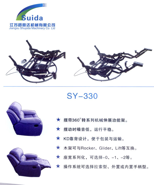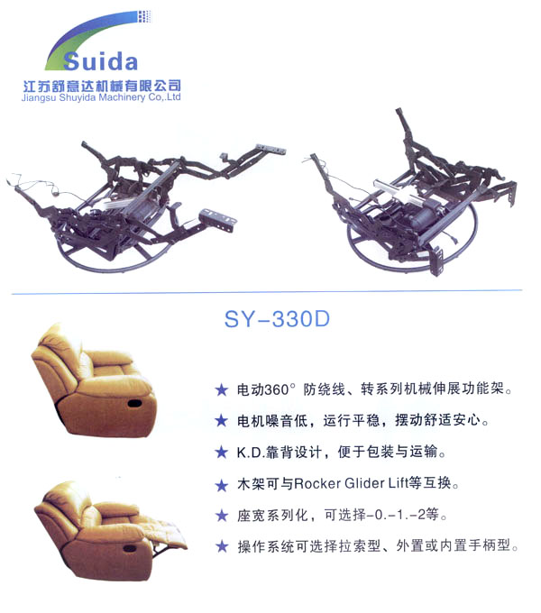 江蘇舒意達(dá)機(jī)械有限公司是一家集研發(fā)設(shè)計,生產(chǎn)制造及銷售的專業(yè)家具五金企業(yè)。公司成立于2006年,座落于風(fēng)景秀麗的江南常州,交通運輸?shù)锰飒毢,為海?nèi)外客商的來往交流,洽談和供貨提供了諸多便利,公司占地面積28000平方米,生產(chǎn)廠房面積18000平方米,獨立的辦公樓,擁有良好的工作環(huán)境。 我們的經(jīng)營思理念:堅持以人為本,科技為先,用先進(jìn)的設(shè)備,好的工藝流程制造一流的產(chǎn)品。 我們的口號:保證以優(yōu)秀的品質(zhì)服務(wù)于客人,我們的目標(biāo):研發(fā)更多舒適的產(chǎn)品,帶來生活的享受。 公司誠邀海內(nèi)外客商前來指導(dǎo)洽談,攜手共進(jìn),共造雙贏。