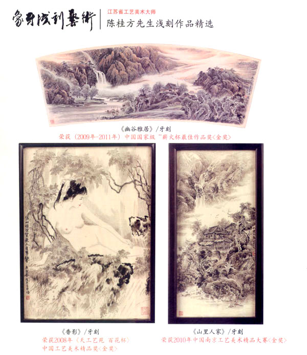 陳桂方,江蘇常州武進(jìn)人,中國著名雕刻藝術(shù)家,江蘇省工藝美術(shù)大師、研究員級、高級工藝美術(shù)師,江蘇省非物質(zhì)文化遺產(chǎn)《象牙淺刻》代表性傳承人。畢業(yè)于中國書畫函授大學(xué),深造于清華大學(xué)、南大美術(shù)系,現(xiàn)任中國工藝美術(shù)協(xié)會會員,江蘇省工藝美術(shù)學(xué)會理事,常州市工藝美術(shù)家協(xié)會副秘書長,常州市工藝美術(shù)行業(yè)協(xié)會常務(wù)理事,武進(jìn)工藝美術(shù)協(xié)會副主席。陳桂方大師淺刻作品的藝術(shù)特點(diǎn):山水氣韻生動,氣勢磅礴,場面壯觀,刀法細(xì)膩:人物仕女生動可人,栩栩如生,充分表達(dá)體現(xiàn)了中國象牙工藝獨(dú)具的內(nèi)在文化底蘊(yùn)和現(xiàn)代社會的審美觀念及獨(dú)特的淺刻藝術(shù)表現(xiàn)技藝。對每件藝術(shù)作品創(chuàng)作都精益求精,強(qiáng)調(diào)藝術(shù)創(chuàng)作的思想性、意境及內(nèi)涵。注重章法構(gòu)思,掌握牙刻藝術(shù)的特性表現(xiàn),作品具有鮮明生動的時代氣息,獨(dú)具所創(chuàng)工筆與寫意相結(jié)合的牙刻藝術(shù)表現(xiàn)手法和表現(xiàn)形式,出眾、飄逸、多變的刀法技藝,粗獷處見細(xì)微、方寸間見大觀的創(chuàng)作理念深受專家權(quán)威的肯定和業(yè)內(nèi)人士的一致好評。陳桂方大師至企頑事象牙淺刻藝術(shù)創(chuàng)作近四十余載,完善了自己的創(chuàng)作體系,成就了自己獨(dú)特的藝術(shù)風(fēng)格。作品數(shù)年來連續(xù)二十多次榮獲國家最高藝術(shù)精品大獎《金獎》,象牙淺刻作品《李逵探母》已被國家工藝美術(shù)館收藏,并頒發(fā)了國家收藏證書,在全國數(shù)十年間尚屬首次。當(dāng)前,陳桂方牙刻藝術(shù)作品已深受廣大海內(nèi)外業(yè)內(nèi)人士、收藏家們的鐘愛、青睞、熱藏,并被譽(yù)為當(dāng)代最杰出最具潛質(zhì)的實力派藝術(shù)大師。