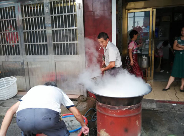 常州新北區(qū)孟河公陽(yáng)小吃店從事鱔絲面23年,經(jīng)營(yíng)面積100平方米,黃鱔全是野生,面湯采用高湯制作(鱔魚湯),下面的時(shí)候先用開(kāi)水把黃鱔燙熟,然后用竹刀批下二條黃鱔肉,除去骨頭肚腸,切成段后入油鍋里炸酥,再用白湯烹制成為面澆頭。而面湯是用鱔魚骨頭、豬骨等用大鍋猛火煮上三、四個(gè)鐘頭,成為一鍋濃濃的白湯,再進(jìn)行調(diào)味,吃到嘴里全身舒坦。