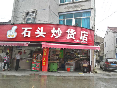湖塘花東街上的“石頭炒貨店”是20多年的老字號了。上個(gè)世紀(jì)90年代,二十郎當(dāng)歲的“石頭”一一石愛軍從徐州來到武進(jìn),就在這條街上擺了個(gè)炒貨攤!皫灼椒矫椎男〉?cái),邊上架個(gè)大鐵鍋,炒出的瓜子、花生、蠶豆,鋪在竹篾上篩過、冷卻后就可以賣了!笔瘣圮娀貞洠址秽徖锩爸盏膰(yán)寒,擠在地?cái)偳皣L著剛出鍋的瓜子的場景,還歷歷在目。20多年過去了,鄰居們都成了最熟悉的親人,從年輕姑娘到抱著孫子的老人,大家還是最愛吃石頭炒的瓜子。而炒貨店的店面也擴(kuò)大了,并且在湖塘另開了多家分店。 生意最好的還是花東街上的老店。不大的店面,被一袋袋瓜子、花生、蠶豆、核桃堆得滿滿的,空氣里也滿滿都是堅(jiān)果的香氣。超大瓜子唇齒留香,去皮瓜子鮮香入昧,南瓜子皮薄肉厚,還有開心果、手剝松子、小油果、核桃、碧根果、小黃豆,以及炒米糕、蛋卷、麻松條、紫薯干、地瓜干、山芋片、鍋巴、芝麻糖、山楂、麻花、葡萄干….這么多美昧都是老板親手制作。愛吃點(diǎn)什么,就用一 長柄勺鏟點(diǎn)兒什么,最質(zhì)樸簡單的包裝袋里,裝著的是屬于這條老街居民記憶里的味道,穿過幾十年的時(shí)光,仍然鮮活生動(dòng)地銘刻在每一個(gè)人的里。 “少東家”石榮沖就是在這個(gè)老店、這條老街長大的。他說目前自己炒瓜子的技藝還沒到火候,還在跟著父親學(xué)習(xí)的階段!碧暨x原料、炒制工序,每一步都有學(xué)問在里頭。”拿店內(nèi)的銷售冠軍“內(nèi)蒙大瓜子”來說,這種來自內(nèi)蒙、經(jīng)過充足日照的葵花子每顆長度近2厘米,個(gè)頭特別大,也十分飽滿。拈一顆大瓜子,就連嗑起來的聲音也分外清脆。外皮很容易與內(nèi)仁剝離,碩大的瓜子仁口感十分香脆,與別家作料用得很足、吃起來特別鮮咸的瓜子不同,這種大瓜子更注重烘托原昧,淡淡的咸昧在舌尖掠過,剩余的都是屬于瓜子的天然香甜。