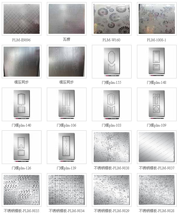 我公司是一家專(zhuān)業(yè)研發(fā)、制造不銹鋼模板、電梯裝潢板等產(chǎn)品的廠家,產(chǎn)品主要適用于壓制三聚氰胺貼板、強(qiáng)化復(fù)合地板、膠合板、PVC板等。 公司主要產(chǎn)品有鏡面、亞光、麻面、浮雕、水晶面、木紋、布紋、皮紋、石紋、瓦楞紋等常規(guī)類(lèi)不銹鋼模板和裝飾板,以及V型槽、R型槽、波浪紋、手抓紋、仿真對(duì)紋等高檔復(fù)合地板專(zhuān)用模板。本公司堅(jiān)持以最優(yōu)質(zhì)的選材,最精湛的工藝,最先進(jìn)的技術(shù)用心打造每一款產(chǎn)品,使之藝術(shù)感與實(shí)用性并存,充滿(mǎn)著生機(jī)與活力,為客戶(hù)提供更多更理想的選擇。公司最新推出模壓門(mén)專(zhuān)用模板,可壓制各種三聚氰胺貼面門(mén)皮,為浙江永康門(mén)都以及全國(guó)各大門(mén)廠提供優(yōu)質(zhì)服務(wù)。