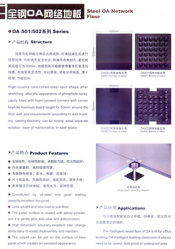 常州市蘇杰機(jī)房地板有限公司是高架地板專業(yè)制造商,專業(yè)從事防靜電地板、OA網(wǎng)絡(luò)地板等各種系列高架地板的研發(fā)、制造和銷售,并提供各種機(jī)房地面和智能化辦公區(qū)地面的整體解決方案。 公司廠區(qū)面積30000平方米,擁有全鋼地板生產(chǎn)線兩條,木基、硫酸鈣基地板生產(chǎn)線各一條,年綜合產(chǎn)能100萬平方米。生產(chǎn)蘇杰牌防靜電地板系列和蘇杰牌網(wǎng)絡(luò)地板系列,主要產(chǎn)品有全鋼防靜電架空地板、全鋼OA網(wǎng)絡(luò)地板、瓷磚貼面防靜電地板、硫酸鈣防靜電地板、木基防靜電地板、鋁合金防靜電地板、防靜電通風(fēng)地板等。 蘇杰人秉承“科技先導(dǎo)、市場為本、持續(xù)發(fā)展”的企業(yè)發(fā)展觀,堅(jiān)持“以先進(jìn)技術(shù)裝備為基礎(chǔ),以現(xiàn)代化管理為依托,以專業(yè)化服務(wù)為保障”的宗旨,使公司不斷發(fā)展壯大成為現(xiàn)代化的企業(yè)。 蘇杰人堅(jiān)持“嚴(yán)謹(jǐn)思考、嚴(yán)密操作、嚴(yán)格檢查、嚴(yán)肅驗(yàn)證”的品質(zhì)理念和“以客戶為中心”的服務(wù)理念,始終致力于產(chǎn)品的技術(shù)創(chuàng)新和質(zhì)量創(chuàng)優(yōu),為用戶提供優(yōu)質(zhì)的產(chǎn)品、合理的價格和貼心的服務(wù)。 常州市蘇杰機(jī)房地板有限公司將不斷開發(fā)和制造一流的產(chǎn)品,吸引和培養(yǎng)一流的人才,提供和完善一流的服務(wù),樹立和保持一流的形象,與時俱進(jìn),共謀發(fā)展。