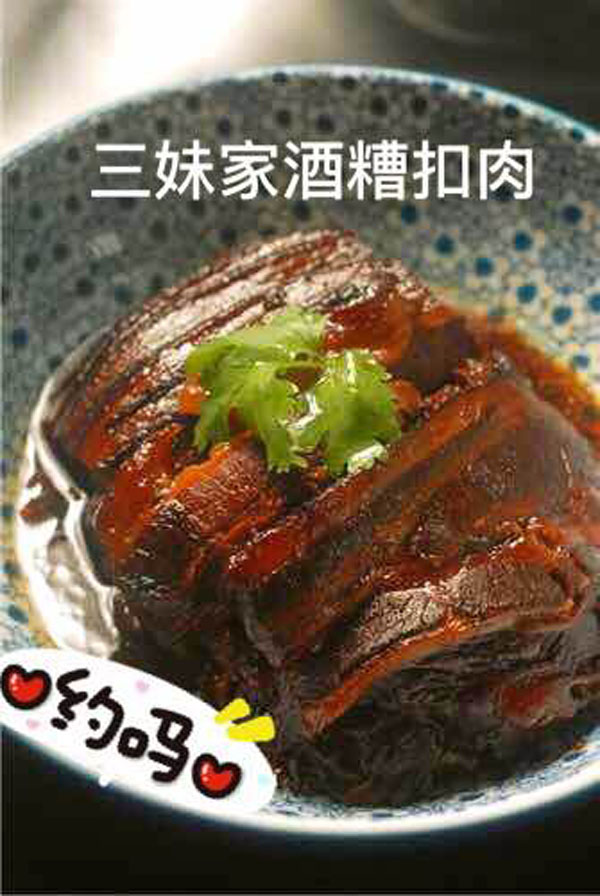 橫林有個地兒叫楊歧村,有句老話叫“上不靠橫林,下不靠洛社”,說的就是那里。 楊歧村過去幾十米就是無錫地界,今天小編推薦的土菜館「三妹農(nóng)家小吃」就在那里。 當(dāng)小編一路七拐八拐,中午11點半到達(dá)那里時,門面雖然很簡陋,但店門口已然停了好多輛車。剛進(jìn)入店門,就發(fā)現(xiàn)這家店人氣好旺,十幾桌基本都坐滿了。(所以說,人不可貌相,餐館也是如此) "三妹,三妹。⒌昀锟腿私袉韭暡唤^于耳,原來老板娘叫楊三妹啊。你們忙,我們先隨便看看。 過大廳到后堂就是冷菜間,里面有白切草雞、鹵豬干、拌馬蘭等十幾種土菜,尤其那草雞濃郁的香味,讓小編肚子叫得咕咕響。 往前是活貨區(qū),各種鮮魚活蝦一格一格區(qū)分養(yǎng)著,再里面是開放式廚房,每個客人都可以看到,選用的放心食材和調(diào)料。  吃貨老板娘,楊三妹,三妹,從小到大一直有個嗜好,就是愛美味,不光喜歡吃,還喜歡鉆研做。2010年,「三妹小吃」開張,因為獨具特色,在楊歧這個小村一炮而紅。要說楊三妹最拿手的菜是什么,當(dāng)然是酒糟扣肉。 糟本來就是一種做米酒留下來后,用來吊燒酒的。但是我們常州人很聰明,把糟和肉放在一起,做成一道美味菜,叫酒糟扣肉。 楊三妹的酒糟扣肉之所以有名,得益于母親的悉心傳授。記憶里小辰光,她母親做的扣肉總比別人家的香!冈恪,釀完酒后留下的糟,會與炒熟的新糯米,拌和在一起,陳一年。「肉」,選擇本地養(yǎng)殖的良種豬,沒有臊味。 長大后,她把記憶里的美味延續(xù)了下來。精益求精的她,對扣肉的制作過程要求很嚴(yán)格。別人家制作都是把肉直接切大塊,排碗,熬槽,蒸爛。三妹說,這樣烹制,肉汁的鮮美會流失很多,口感減分不少。她的做法是精選新鮮豬五花,整大塊清蒸,保留肉汁的鮮美,之后再切塊紅燒,排碗,熬糟,澆蓋,再蒸。 三妹酒糟扣肉,出鍋后,色澤紅潤,味道鮮美。既有酒的香味,又有肉的鮮美,而且經(jīng)過蒸煮后,油脂都出來了,爽口不油膩。