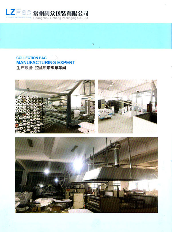 常州利眾包裝有限公司成立于2009年。經(jīng)過10多年的發(fā)展,已發(fā)展成為規(guī)模型的集成袋生產(chǎn)與研發(fā)基地。公司擁有四條拉絲生產(chǎn)線,20余臺各式圓織機、10余臺織帶機,1臺寬幅涂膜機,10余臺自動裁剪機,200多臺各式縫紉設(shè)備,其中電腦縫紉設(shè)備多達40多臺。公司月產(chǎn)各種中高檔集裝袋20萬條左右。 擁有強大的質(zhì)量管理系統(tǒng)。公司成立初期就通過了ISO9001的體系論證。公司奉行“質(zhì)量第一,客戶至上”的經(jīng)營理念,始終堅持以質(zhì)量謀發(fā)展的原則,執(zhí)著追求以新工藝,新設(shè)備,高效率不斷優(yōu)化生產(chǎn)流程,降低生產(chǎn)成本以適應(yīng)市場。常州利眾包裝有限公司地處美麗的江南水鄉(xiāng)——常州。地理位置十分優(yōu)越。 公司主打產(chǎn)品為各種中高端集裝袋。包括各式拉筋袋,導電袋,抗靜電袋。公司客戶清單中包括有很多的國際知名企業(yè),世界500強企業(yè)。 眾包裝——你的包裝解決方案。