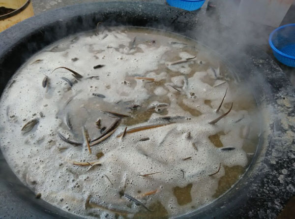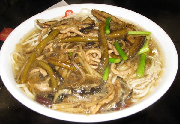 常州新北區(qū)孟河公陽小吃店從事鱔絲面23年,經(jīng)營面積100平方米,黃鱔全是野生,面湯采用高湯制作(鱔魚湯),下面的時候先用開水把黃鱔燙熟,然后用竹刀批下二條黃鱔肉,除去骨頭肚腸,切成段后入油鍋里炸酥,再用白湯烹制成為面澆頭。而面湯是用鱔魚骨頭、豬骨等用大鍋猛火煮上三、四個鐘頭,成為一鍋濃濃的白湯,再進行調(diào)味,吃到嘴里全身舒坦。