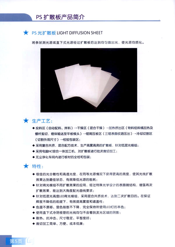 常州市聯(lián)豐(鏡面輥)集團(tuán)成立于2000年,是國(guó)內(nèi)從事板片材行業(yè)輥筒制造的專(zhuān)業(yè)企業(yè)。聯(lián)豐集團(tuán)全資子公司常州市聯(lián)豐光電科技有限公司成立于2013年6月。聯(lián)豐光電專(zhuān)業(yè)從事光學(xué)級(jí)擴(kuò)散板的研發(fā),生產(chǎn)和銷(xiāo)售。擁有各類(lèi)高級(jí)技術(shù)研發(fā)人員10人,生產(chǎn)、管理及銷(xiāo)售人員60人。公司廠房占地面積2萬(wàn)平方米,工廠擁有十萬(wàn)級(jí)凈化車(chē)間,能有效滿足光學(xué)領(lǐng)域擴(kuò)散板生產(chǎn)的環(huán)境要求。公司已經(jīng)申報(bào)江蘇省高新技術(shù)企業(yè)。 公司現(xiàn)擁有全新進(jìn)口PS專(zhuān)用擴(kuò)散板材生產(chǎn)線兩條,月生產(chǎn)能力650噸PS擴(kuò)散板。日本進(jìn)口協(xié)榮裁切一體機(jī)兩臺(tái),月加工能力50萬(wàn)片(32寸擴(kuò)散板)。 聯(lián)豐生產(chǎn)的VFP系列PS擴(kuò)散板能廣泛應(yīng)用于直下式LED,CCFL液晶電視背光模組。產(chǎn)品在很多國(guó)內(nèi)一線TV的背光模組上使用。產(chǎn)品具有高輝度,高擴(kuò)散性,特別適用于超薄背光模組的擴(kuò)散部件,能有效降低成本,節(jié)約能源。 由于LED照明行業(yè)的興起,公司特別針對(duì)于LED面板燈和筒燈開(kāi)發(fā)的LFP系列擴(kuò)散板,在滿足透光率條件下,能最大限度提高光通量,從而增加燈具的光效,受到廣大客戶的好評(píng)。