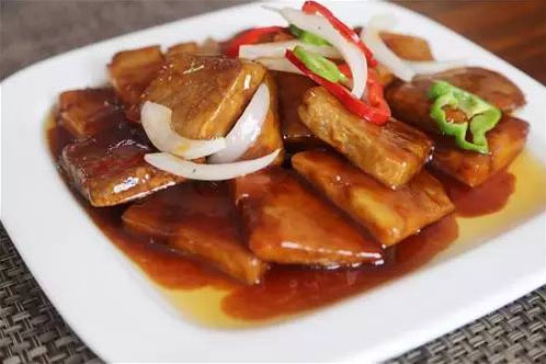 特色香芋 你可別誤會,這可不是豆腐干,看似樸素的外表下卻大有來頭。張總說,有次在廣西嘗到了有名的荔浦芋頭,非常好吃,便想著這美味應(yīng)該讓家鄉(xiāng)的父老也能嘗到;貋砗,他走訪常州各大市場,終于在凌家塘找到一家荔浦芋頭供應(yīng)商,保證了正宗新鮮的貨源。貨源有了,菜怎么做呢?常州人喜香、喜咸甜,在和廚師不斷地嘗試下,外皮酥脆、內(nèi)軟香糯、松而不粘的特色香芋誕生了。張總自豪地說道,咱們這香芋加了一味蜂蜜,咸甜適口,不僅好吃還健康養(yǎng)生。新老顧客,逢來必點(diǎn)。
