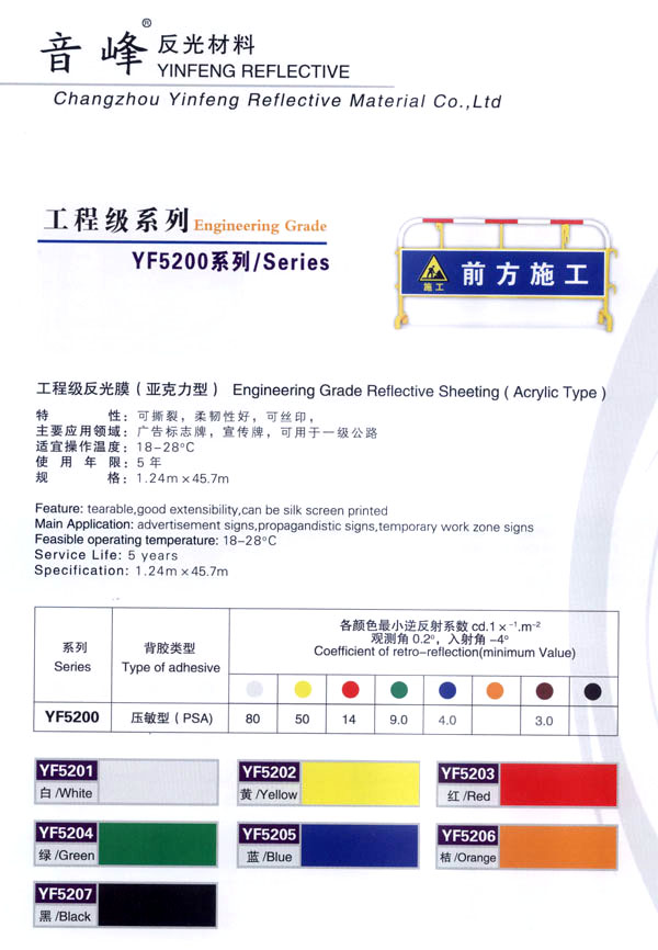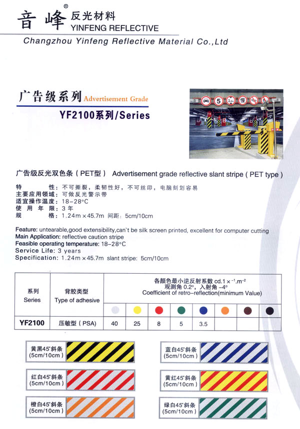 公司主生產(chǎn):廣告級(jí)反光膜、工程級(jí)反光膜、車牌級(jí)反光膜、高強(qiáng)級(jí)反光膜、廣告級(jí)反光雙色條、發(fā)光膜、噴繪反光膜、晶彩格、電信電力反光膜,鍍鋁膜等等..........根據(jù)國(guó)家指令法規(guī):反光材料的領(lǐng)域,如公路標(biāo)志、標(biāo)牌、標(biāo)線、礦山、鐵路等......... 反光膜廣泛應(yīng)用于各種廣告標(biāo)志牌,公路鐵路的導(dǎo)向牌、指示牌、地名牌、車牌,道路交通標(biāo)志,物業(yè)小區(qū)標(biāo)志,臨時(shí)施工標(biāo)志,廣告宣傳、安全防護(hù)、高等級(jí)公路的各種警示標(biāo)語(yǔ),標(biāo)識(shí)牌等。