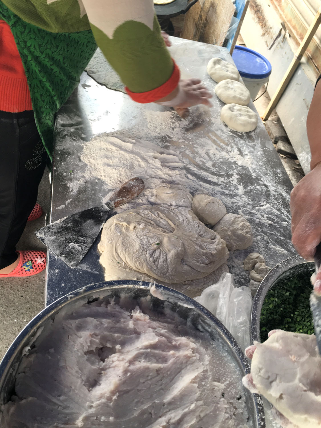 魁元面館,橫山橋江南路,沿街的店鋪。老板娘徐文霞,從公婆手里接過(guò)這個(gè)店面已有20多年。最具特色的菜品是肉圓跟大排。每天凌晨3點(diǎn)就要起來(lái)做準(zhǔn)備,菜都是現(xiàn)燒現(xiàn)賣。 特色小菜: 肉圓:有人特意遠(yuǎn)道而來(lái)打包走 大排面:每天能賣出100來(lái)塊大排 大腸 雞蛋:每天煎的雞蛋就差不多300來(lái)個(gè) 小餛飩、大餛飩 限時(shí)供應(yīng): 咸鴨蛋、肉粽、蛋黃粽:每天都要包,放爐子燒,在端午前后供應(yīng),很好吃。每天都有人打包幾個(gè)咸鴨蛋或者粽子拿回家,送人 油酥餅(圖3-4)、糍團(tuán)餅(圖5-6)、韭菜餅(圖7-8) 油酥餅每天晚上做,涼了更好吃,更酥更脆,里面都是很香的黑芝麻;糍團(tuán)餅,每天中午擺攤熱了煎鍋開始煎,糯米做成,用菜籽油煎至金黃,餡兒是黑芝麻瓜子仁;韭菜餅是最受歡迎的,每天都有好多人排隊(duì)來(lái)買。供應(yīng)時(shí)間:每年的4月份到11月份 下午1點(diǎn)到5點(diǎn)半。