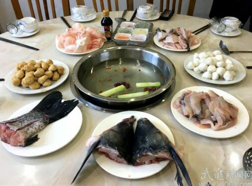 洛陽(yáng)戴溪青魚火鍋店,眾所周知,火鍋屬于川菜,以麻、辣、鮮、香著稱,是四川的美食代表。如今,火鍋店遍地開花。作為本土自創(chuàng)品牌老字號(hào)火鍋店,洛陽(yáng)戴溪青魚火鍋店20年來屹立不倒,自然有它獨(dú)到的地方。 青魚火鍋獨(dú)此一家,青魚火鍋,顧名思義,最主要的食材當(dāng)然就是青魚。走進(jìn)洛陽(yáng)戴溪青魚火鍋店,就會(huì)被大堂內(nèi)的兩塊大匾所吸引,上面詳細(xì)介紹了戴溪青魚。“常州市名牌產(chǎn)品”、“武進(jìn)農(nóng)家特色菜”,可見戴溪青魚的知名度。 洛陽(yáng)鎮(zhèn)戴溪地區(qū)養(yǎng)殖青魚歷史悠久。從20世紀(jì)50年代開始,當(dāng)?shù)鼐拖破鹆损B(yǎng)殖青魚的熱潮,并逐步形成了獨(dú)具特色的青魚產(chǎn)業(yè)。青魚是四大家魚之首,肉質(zhì)細(xì)嫩且鮮美,蛋白質(zhì)含量超過雞肉,是淡水魚中的上品。 近水樓臺(tái)先得月,今年57歲的陳煥祥是土生土長(zhǎng)的戴溪人,10年前,他將自己已經(jīng)開了10年的重慶火鍋店轉(zhuǎn)型升級(jí),“既然凡是能吃的食物都可以在火鍋中燙食,何不把特產(chǎn) 戴溪青魚作為火鍋食材呢’”據(jù)了解.這也是常武地區(qū)唯一一家青魚火鍋店。 戴溪青魚火鍋店選用的都是附近漁場(chǎng)的正宗戴溪青魚.體形瘦長(zhǎng),魚身烏黑.重量在12斤左右。在火鍋店的原料間,記者見到了一口巨大的魚池,里面養(yǎng)的部是活蹦亂跳的戴溪青魚!皝砦覀兊昀锵M(fèi)的,大都是;中著青魚火鍋來的.平均一天就要?dú)? 2條青魚!标悷ㄏ楦嬖V記者。 戴溪青魚全身都是好食材,在食材的挑選上.戴溪青魚火鍋店絕對(duì)不馬虎。戴溪青魚全身都是好食材.在這里.魚尾、魚頭、魚塊、魚片、魚丸、魚鰾.關(guān)于青魚的每一道菜品都透著新鮮。光是魚丸就分兩種,一種是白煮,一種是油炸,其中,炸魚丸是食客必點(diǎn)菜。將魚肉、雞蛋混合,充分?jǐn)嚢瑁嗄笾敝寥跒橐惑w.再放入油鍋中。魚丸表皮逐漸被油炸成金黃,慢慢浮上油面.待熱油滴;爭(zhēng)便是美味上桌之時(shí)。 “青魚尾巴鰱魚頭”的美食俗話,提醒人們青魚最美味的是尾段。青魚火鍋?zhàn)匀簧俨涣饲圄~尾巴.將魚尾細(xì)劃幾刀.放入滾熱的火鍋中煮食。青魚體量大,在河中游動(dòng)覓食時(shí).尾巴用力尤甚,所以魚尾部分豐腴黏軟勝似魚翅。 說到涮魚片.不像普通火鍋店里切得薄如蟬翼的魚片.這里的每片青魚片都有三四毫米厚。陳煥祥告訴記者.這樣才能吃出魚肉的彈性和韌性,保持魚的原生態(tài)。 魚鰾也是這里的一大美食.但一條魚只有一個(gè)魚鰾,只能限量供應(yīng)。要吃魚鰾,還得看運(yùn)氣。吃過的食客表示,魚鰾很筋道,有嚼勁又有黏性,口感很好。 二十年如一日?qǐng)?jiān)守品質(zhì)吃火鍋.講究食材的本味.只用一鍋清湯便能吃出戴溪青魚最正宗的味道。戴溪青魚火鍋的菜品不僅限于青魚,其他菜肴也講究新鮮,突出本味。除了戴溪青魚,這里還有野生甲魚、野生董鱔、河蝦等各種新鮮火鍋食材。美味,源自陳煥祥二十年如一日對(duì)于品質(zhì)的堅(jiān)守。他每天早上5點(diǎn)半起床,6點(diǎn)半買菜,每道菜品的質(zhì)量都由他驗(yàn)視過關(guān)后才能上桌,他還花重金請(qǐng)專業(yè)人士研制了青魚火鍋專用醬油。 陳煥祥的兒子陳俊杰大學(xué)學(xué)的是酒店管理,畢業(yè)后就職于湖塘一家酒店,從普通服務(wù)員一直做到銷售經(jīng)理,幾年前回來幫父親打理火鍋店。兒子的加人,讓美味傳承有了新起點(diǎn)。