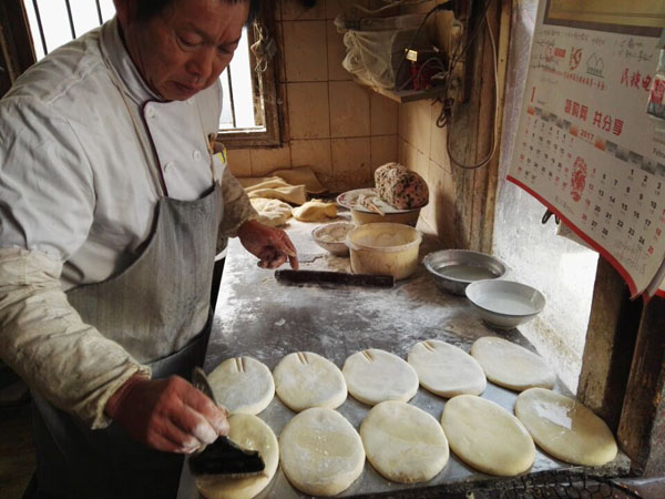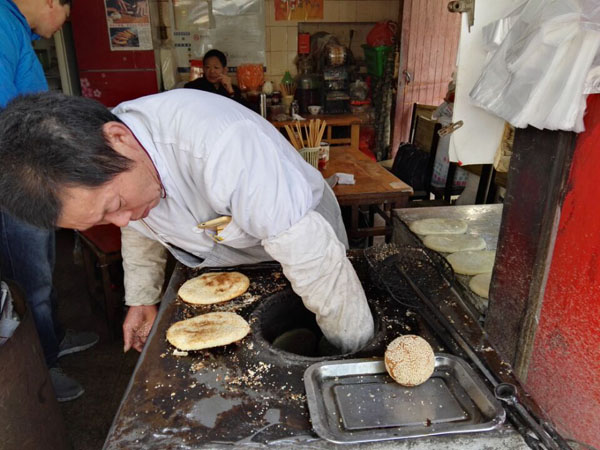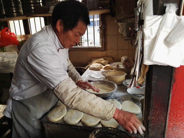 常州人夏亞寶的大麻糕技術(shù)是上世紀(jì)80年代更著新橋麻糕店的師傅周金生學(xué)的,1999年開(kāi)店至今,在附近一帶做得小有名氣,向?qū)W校供應(yīng)麻糕,整整6年。 “做大麻糕太辛苦,半夜爬起來(lái)準(zhǔn)備熱爐子、和面、做餡,年輕人吃不了這苦,15年我都沒(méi)請(qǐng)人,和老婆一起打過(guò)來(lái)的!毕膩唽氈钢直凵系臓C傷的痕跡說(shuō),能堅(jiān)持烤桶制作大麻糕的真心不多了。夏亞寶的烤桶是自制的,爐心常州買(mǎi)不到,他托人從無(wú)錫買(mǎi)來(lái),15年前85元一個(gè),前年漲到150元。“烤桶的爐心其實(shí)就是以前船上人家用的行爐”,去底后鑿個(gè)洞,然后外面加上隔熱材料,最后貼上鐵片”。 15年,這已經(jīng)是第三只貼桶了。