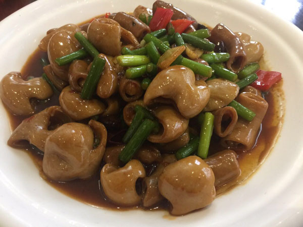 橫林有個(gè)地兒叫楊歧村,有句老話叫“上不靠橫林,下不靠洛社”,說(shuō)的就是那里。 楊歧村過(guò)去幾十米就是無(wú)錫地界,今天小編推薦的土菜館「三妹農(nóng)家小吃」就在那里。 當(dāng)小編一路七拐八拐,中午11點(diǎn)半到達(dá)那里時(shí),門(mén)面雖然很簡(jiǎn)陋,但店門(mén)口已然停了好多輛車(chē)。剛進(jìn)入店門(mén),就發(fā)現(xiàn)這家店人氣好旺,十幾桌基本都坐滿了。(所以說(shuō),人不可貌相,餐館也是如此) "三妹,三妹。⒌昀锟腿私袉韭暡唤^于耳,原來(lái)老板娘叫楊三妹啊。你們忙,我們先隨便看看。 過(guò)大廳到后堂就是冷菜間,里面有白切草雞、鹵豬干、拌馬蘭等十幾種土菜,尤其那草雞濃郁的香味,讓小編肚子叫得咕咕響。 往前是活貨區(qū),各種鮮魚(yú)活蝦一格一格區(qū)分養(yǎng)著,再里面是開(kāi)放式廚房,每個(gè)客人都可以看到,選用的放心食材和調(diào)料。  吃貨老板娘,楊三妹,三妹,從小到大一直有個(gè)嗜好,就是愛(ài)美味,不光喜歡吃,還喜歡鉆研做。2010年,「三妹小吃」開(kāi)張,因?yàn)楠?dú)具特色,在楊歧這個(gè)小村一炮而紅。要說(shuō)楊三妹最拿手的菜是什么,當(dāng)然是酒糟扣肉。 糟本來(lái)就是一種做米酒留下來(lái)后,用來(lái)吊燒酒的。但是我們常州人很聰明,把糟和肉放在一起,做成一道美味菜,叫酒糟扣肉。 楊三妹的酒糟扣肉之所以有名,得益于母親的悉心傳授。記憶里小辰光,她母親做的扣肉總比別人家的香。「糟」,釀完酒后留下的糟,會(huì)與炒熟的新糯米,拌和在一起,陳一年!溉狻,選擇本地養(yǎng)殖的良種豬,沒(méi)有臊味。 長(zhǎng)大后,她把記憶里的美味延續(xù)了下來(lái)。精益求精的她,對(duì)扣肉的制作過(guò)程要求很?chē)?yán)格。別人家制作都是把肉直接切大塊,排碗,熬槽,蒸爛。三妹說(shuō),這樣烹制,肉汁的鮮美會(huì)流失很多,口感減分不少。她的做法是精選新鮮豬五花,整大塊清蒸,保留肉汁的鮮美,之后再切塊紅燒,排碗,熬糟,澆蓋,再蒸。 三妹酒糟扣肉,出鍋后,色澤紅潤(rùn),味道鮮美。既有酒的香味,又有肉的鮮美,而且經(jīng)過(guò)蒸煮后,油脂都出來(lái)了,爽口不油膩。