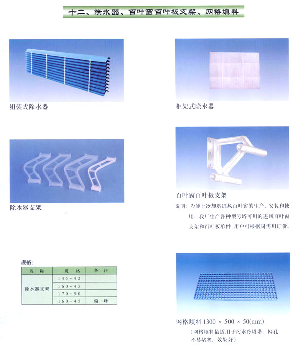 我廠專業(yè)生產(chǎn)各種環(huán)保設(shè)備配件,“鶴清”牌注冊商標(biāo)水處理設(shè)備及配件為“江蘇省市場公認(rèn)名牌產(chǎn)品”。產(chǎn)品銷往國內(nèi)二十多個(gè)省、市、自治區(qū),并遠(yuǎn)銷蘇丹、澳大利亞等國,深得用戶好評(píng)。二十多年來,我廠以“科學(xué)管理,技術(shù)領(lǐng)先,質(zhì)量第一,顧客至上”為宗旨,不斷創(chuàng)新。隨著科技的發(fā)展,我廠在中國電機(jī)工程協(xié)會(huì)冷卻塔專業(yè)委員會(huì)、中國水利水電科學(xué)研究院冷卻水研究所的大力支持和幫助下,產(chǎn)品有了很大的發(fā)展,并獲得了改進(jìn)型噴濺裝置和均濺式噴濺裝置兩項(xiàng)專利。最近本廠又研制生產(chǎn)了多種效率更高的塔用新型填料和收水器。塔用噴頭、塔芯填料、收水器、污水處理填料、濾水帽、曝氣頭等已有兩百多個(gè)品種,可供不同用戶選用。