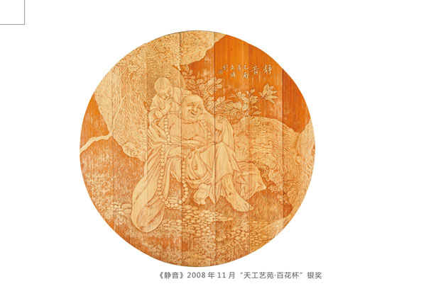 得獎情況 1、扇形擺件《花鳥》2004年9月太湖博覽會金獎 2、《蘭亭序》2008年11月江蘇藝博杯工藝美術精品獎銀獎 3、《雄風圖》2008年11月江蘇藝博杯工藝美術精品獎創(chuàng)意獎 4、《靜音》2008年11月“天工藝苑•百花杯”中國工藝美術精品獎銀獎 5、《人物》2008年12月中國收藏藝術精品博覽會金獎 6、《花鳥》200 8年12月中國收藏藝術精品博覽會銀獎 7、《青竹鳥語》2008年12月中國收藏藝術品博覽會“入圍收藏品” 8、《吉祥富貴》2009年3月“金鳳凰”創(chuàng)新產(chǎn)品設計大獎賽金獎 9、《黃山云海》2009年10月江蘇藝博杯工藝美術精品獎金獎 10、《花鳥》2009年10月第二屆江蘇旅游商品博覽會最佳產(chǎn)品獎 11、《秋菊圖》2009年11月“天工藝苑•百花杯”中國工藝美術精品獎銀獎 12、《秋鷹圖》2010年3月“金鳳凰”創(chuàng)新產(chǎn)品設計大獎賽優(yōu)秀獎 13、《花鳥四屏》2010年3月“金鳳凰”創(chuàng)新產(chǎn)品設計大獎賽銅獎 14、《荷塘清暑》2010年5月深圳國際文化產(chǎn)業(yè)博覽交易會銅獎 15、《溪山煙云圖》2010年9月江蘇藝博杯工藝美術精品大獎賽金獎 16、《高士臨風圖》2010年10月“天工藝苑•百花杯”中國工藝美術精品獎銀獎 17、《溪山煙云圖》2010年11月第二屆東方工藝美術之都博覽會“迎春花獎” 18、《深山尋隱圖》2011年3月“金鳳凰”產(chǎn)品設計大獎賽銅獎 19、《欣欣向榮》2011年5月深圳國際文化產(chǎn)業(yè)博覽交易會金獎 20、《江崖遠眺圖》2011年9月江蘇藝博杯工藝美術精品大獎賽金獎 21、《富春山居圖》2011年10月“天工藝苑•百花杯”中國工藝美術精品獎金獎 22、《深山訪友》2011年11月中國無錫國際文化藝術博覽會銀獎 23、《幽谷清音》2012年3月“金鳳凰”創(chuàng)新產(chǎn)品設計大獎賽銅獎 24、《群芳競艷》2012年10月“儒仕儒家、百花杯”中國工藝美術精品博覽會金獎 25、《山村渡口圖》2012年12江蘇藝博杯工藝美術精品大獎賽金獎。 26、《晨妝》2013年4月“金鳳凰”創(chuàng)新產(chǎn)品設計大獎賽金獎。 27、《和風圖》2013年6月中國(青島)工藝美術博覽會創(chuàng)新產(chǎn)品設計大賽金獎。 28、《松壑聽泉》2013年9月江蘇藝博杯工藝美術精品大獎賽銀獎。 29、《君子圖》2013年11月“國信•百花杯”中國工藝美術精品獎銀獎 30《碧水輕舟》2014年5月深圳國際文化產(chǎn)業(yè)博覽交易會銀獎。 31、《千巖萬壑圖》2014年10月“中國原創(chuàng)•百花杯”中國工藝美術精品獎金獎 32、《溪山訪友圖》2014年10月江蘇藝博杯工藝美術精品大獎賽銀獎 33、《深山云壑》2014年12月深圳冬季國際文化產(chǎn)業(yè)博覽交易會金獎 34、《鷹》2015年深圳文化產(chǎn)業(yè)博覽交易會獲“中國工藝美術文化創(chuàng)意獎”金獎
