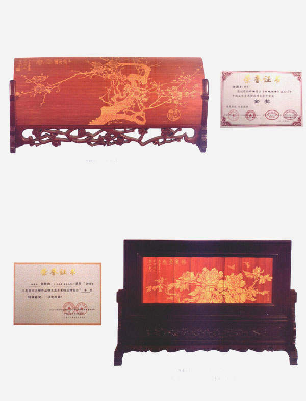白堅仁,1956年生于江蘇常州,國家級非物質文化遺產、江蘇省級傳承人、江蘇省名人,高級工藝美術師,是留青竹刻泰斗白士風之子。從小深受先父的熏陶和指點,寒來署往、夜以繼日,不僅學到了先父厚樸豁達的品格,更深得先父竹刻藝術的真諦。除繼承刻有先父創(chuàng)立的橫臺屏、筆筒等作品外,更注重作品的創(chuàng)新。多年來,經過艱辛的探索和反復的實踐,努力吸取姐妹藝術,成功地采用了多片拼裝,配上紅木框架,制成大型的圖文并貌的作品,如帽籠、大插屏、鏡框掛件、四條屏、甚至中堂。在構圖內容、技法變化、裝幀形式等方面,都走出了創(chuàng)新之路,使所制作品適應了現(xiàn)代人們的審美情趣和生活需求,實現(xiàn)了多年來要使留青竹刻與書畫作品同樣也能懸掛于廳堂之上的愿望。作品多次在國內、國際展覽中獲獎,并獲得了留青竹刻史上的首位二項國家專利擁有者。