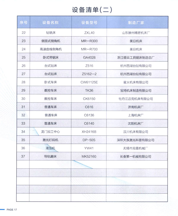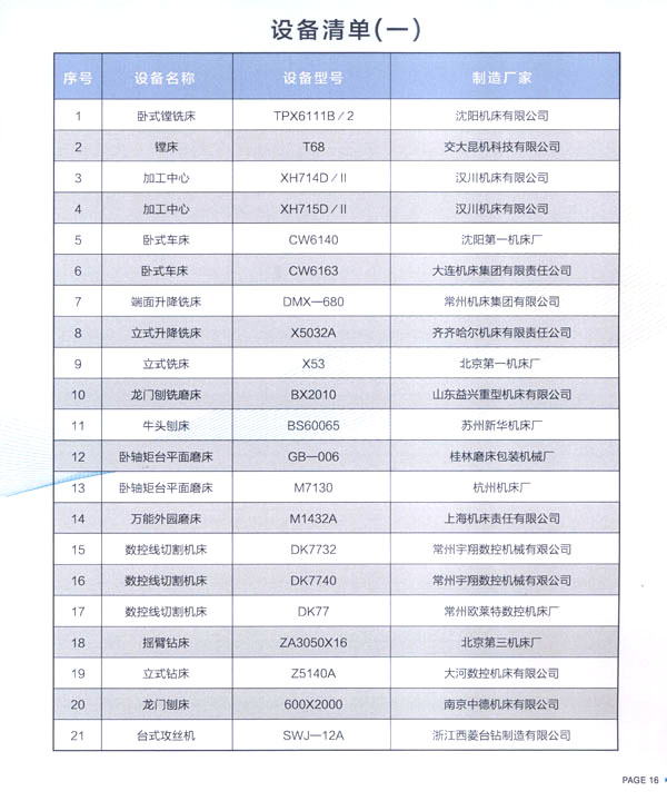 現(xiàn)公司擁有較強(qiáng)的機(jī)械加工能力,建立了一套完善的管理機(jī)構(gòu),技術(shù)力量雄厚,設(shè)備齊全。設(shè)備有:加工中心、鏜銑床、車(chē)床、銑床、龍門(mén)铇銑床、磨床、數(shù)控線切割機(jī)床等其它機(jī)械加工設(shè)備。