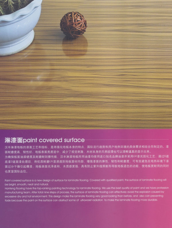 常州漢豐裝飾材料有限公司是一家涉及強化地板制造、屏風鋁材生產、進出口貿易的大型公司。2001年公司投入重資.全面引進世界頂級一體化自動流水生產線和具有國際先進水準的德國權威木地板生產技術,興建強化地板生產基地。多年以來.一直不斷加強生產設備、廠房基礎投入,目前公司年生產強化地板能力已經達到了500萬平方米,步入國內一流行列,具備了雄厚的國際競爭力。 漢豐地板以奉獻生活中最完美的地板為發(fā)展目標,時尚流行的設計風格和多樣化的產品類型,贏得了市場的廣泛贊譽和肯定。產品嚴格按照歐洲標準檢測強化木地板的各項性能指標.達到百分百的國際技術標準,確保了每一塊地板都有著上乘品質,是綠色環(huán)保的好地板。并先后通過了Isc)9001國際質量管理體系認證,IS014001國際環(huán)境管理體系認證.中國環(huán)境標志產品認證,深得用戶的一致好評,是寫字樓、商場、大型超市、學校、建筑樓宇、娛樂場所、家用私宅等鋪裝的首選地板。