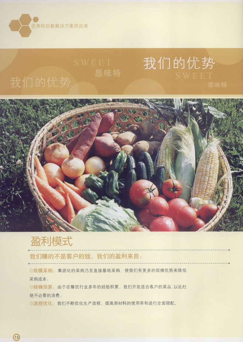 常州市思味特餐飲有限公司是一家專(zhuān)業(yè)從事企事業(yè)后勤服務(wù)的有限責(zé)任公司,公司從承包食堂起步,逐漸發(fā)展為經(jīng)營(yíng)團(tuán)膳承包、營(yíng)養(yǎng)送餐、生活區(qū)管理、連鎖餐廳的綜合型企業(yè)。2008年公司斥資100萬(wàn)元,在常州興建了可以同時(shí)提供3000餐膳食的中央廚房,重點(diǎn)打造“和美客”后勤服務(wù)品牌,全力為企事業(yè)單位解決后勤后顧之憂。 到目前為止,我們合作成功的企事業(yè)單位超過(guò)50多家,服務(wù)人數(shù)突破15萬(wàn),合作單位包括國(guó)家機(jī)關(guān)、國(guó)有企業(yè)、三資企業(yè)、民營(yíng)企業(yè)、學(xué)校、醫(yī)院等,其中不乏國(guó)際知名品牌公司。 和美客愿為更多的國(guó)內(nèi)外企事業(yè)單位及機(jī)關(guān)團(tuán)體分憂解難,從廚房設(shè)計(jì)、菜品配送、團(tuán)膳承包、到生活區(qū)管理等提供全方位的服務(wù)。
