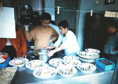 張萬(wàn)成羊莊一家綜合性的公司,下設(shè)酒店,羊產(chǎn)品加工廠,屠宰廠,山羊養(yǎng)殖場(chǎng)。 酒店位于常州西夏墅浦河村,酒店羊宴規(guī)模占地30畝,酒店主要經(jīng)營(yíng)特色全羊宴。 一個(gè)祖?zhèn)鞯臍⒀虼髴,傳到張萬(wàn)成,已是第六代了。張家的羊肉,素來(lái)以肉質(zhì)鮮美著稱,張萬(wàn)成羊莊的主人張建龍是第六代傳人,張家的羊肉素來(lái)以肉質(zhì)鮮美著稱,從常州新北區(qū)沿黃河西路往機(jī)場(chǎng)方向直行至羅溪右轉(zhuǎn),穿過(guò)滬寧高速高架橋后不遠(yuǎn)處左拐沿翠屏湖路直走便能看到張萬(wàn)成羊莊,酒店上下共有三層,2000多平方米經(jīng)營(yíng)面積,能同時(shí)接待近30桌客人的規(guī)模。有自己的羊圈和屠宰場(chǎng),每天殺20多只,菜式近100道。光是原料,就從原來(lái)羊身上的幾個(gè)主要部位,增加到除了羊牙齒以外的一只整羊全部可以入菜。烹制方式,更是在本土單一的燒、炒、煮基礎(chǔ)上,借鑒了東北、廣東、四川等地的烹羊特色,增加了蒸、涮、烤、煎、炸等多種方式。 注重原汁原味的冷菜 白切羊肉:精選羊頸部的活肉精制而成,肥瘦適中,絲毫沒(méi)有一般羊肉的膻味,沾少許張萬(wàn)成羊莊秘制的醬料,口感非常好。 美味羊舌:張家的羊舌感覺(jué)是用特殊的醬料腌制過(guò)的,咸中略有甜味,口感鮮嫩卻肥而不膩,味道很香。 除了白切羊肉和羊舌以外還有許多冷菜品種,如羊肚、羊心、羊耳朵等。。 火候控制精準(zhǔn)的炒菜 炒羊肝:地道的農(nóng)家風(fēng)味,與大蒜葉同炒,蒜香濃郁,羊肝鮮嫩,這羊肝可是火候菜,羊肝鮮嫩與否不但取決于廚師對(duì)火候的掌握,還在于上桌放置時(shí)間的長(zhǎng)短,所以羊肝上桌后要盡快食用,看羊肝是否鮮嫩,只需用筷子挑起并輕輕抖動(dòng),有彈性者為佳。 美味羊?qū)殻阂跃曼S、鮑味菇爆炒的羊?qū)殻f(shuō)是滋補(bǔ)壯陽(yáng)的一道金貴菜,配料講究的燒菜系列 宮廷燴羊肚:較為金貴的菜品,配菜貴于主料,是以名貴的素鮑和新鮮的筍絲與羊肚同煮,口感濃郁,營(yíng)養(yǎng)豐富。 海參白燒羊肉:將取自7個(gè)月大羔羊身上的帶皮腿肉與海參一同煨煮,菜肴美容滋補(bǔ),兩種鮮味互相補(bǔ)益達(dá)到完美交融狀態(tài),口感甚佳。 魚羊鮮:新鮮的青魚配上羊肉,既有本地羊肉的肥嫩,又有魚肉的鮮香,鮮!鮮!古代人造字就是有道理!”店里可以根據(jù)客人的需要配以魚回魚、鯰魚、鱖魚等。 特色的羊宴點(diǎn)心 羊肉餛飩:羊莊老板自創(chuàng)的羊宴點(diǎn)心,看似普通的油燜跑蛋卻另有乾坤,將蛋掀開便能看見藏于其中的羊肉菜餡餛飩,菜和肉都是自家新鮮的原料,很好吃。 手工搟面:不知道是因?yàn)槊媸钦嬲檬止{制還是因?yàn)榧尤肓缩r味十足的羊湯,總之味道非常好,面勁道,湯也鮮美! 張萬(wàn)成羊莊的羊湯也是遠(yuǎn)近聞名,因?yàn)槭亲鎮(zhèn)鞯氖炙,做出?lái)的羊湯不腥不膻,香醇不膩,味道十分鮮美,加入粉絲或者面條更是難得的美味。