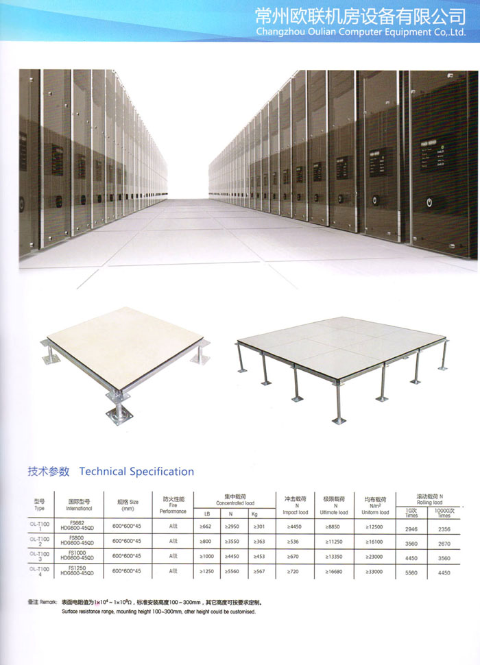 防靜電高架活動(dòng)地板、全鋼地板、陶瓷地板是計(jì)算機(jī)行業(yè)發(fā)展起來的新型鋪地材料,隔離了潮氣、靜電灰塵,最重要的是解決了綜合布線問題,無需預(yù)埋管線,可隨時(shí)拆卸、搬移,保證了資訊設(shè)備完整的優(yōu)點(diǎn),適應(yīng)了智能化樓宇中信息自動(dòng)化技術(shù)對(duì)所處環(huán)境的特定要求,避免了廣大客戶的雙重投資,使現(xiàn)代化辦公程度更加高效,辦公場(chǎng)所更加舒適。 “歐聯(lián)”系列全鋼地板,符合國(guó)家安全要求,種類完備多樣,其中防靜電陶瓷地板、硫酸鈣地板等除具有普通瓷質(zhì)的裝飾和實(shí)用性外,其耐磨、防水、防火功能優(yōu)于其它同類產(chǎn)品,防靜電系列地板,能切合不同客戶的要求,其靈活的配置,深受客戶歡迎,不同材質(zhì)的地板結(jié)構(gòu)使設(shè)計(jì)師的設(shè)計(jì)空間比傳統(tǒng)的更加廣闊自由和善變。 公司大力發(fā)展國(guó)內(nèi)外銷售業(yè)務(wù),多次中標(biāo)國(guó)內(nèi)重點(diǎn)工程 ,例:哈爾濱醫(yī)科大學(xué)、山東大學(xué)、上海普通機(jī)場(chǎng)等。 公司將一如既往開發(fā)和制造一流的產(chǎn)品,愿與廣大有識(shí)之士合作發(fā)展,共創(chuàng)美好未來。