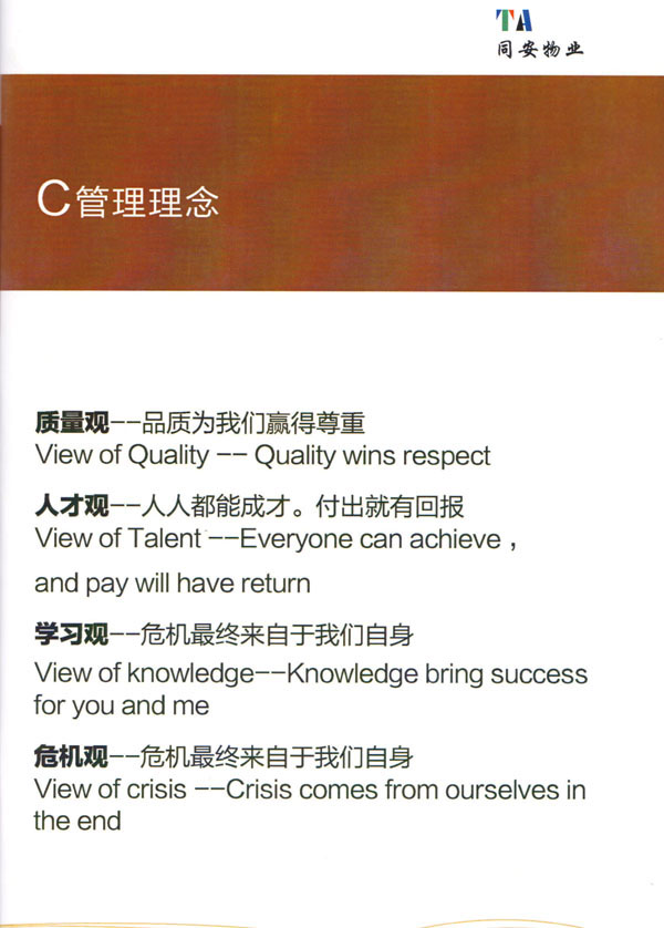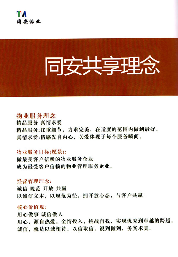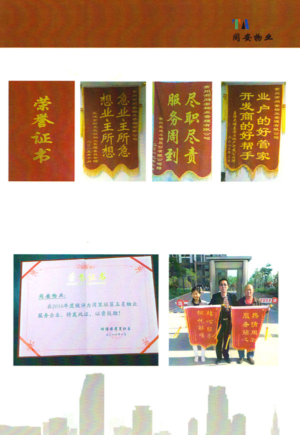 常州市同安物業(yè)管理有限公司注冊1999年,發(fā)展至今已有多年歷史,本公司坐落于美麗的龍城常州,秉承“融聚無限未來”的核心理念,融專業(yè)認(rèn)才,匯優(yōu)質(zhì)資源以”專心,細(xì)心,耐心”的服務(wù)態(tài)度,為客戶打造“安心,順心,稱心”的服務(wù)感受。 公司始終以“打造中國最值得信賴和最值得尊重的物業(yè)管理服務(wù)集成商”為愿景自我鞭策,不斷前行。同安物業(yè)以客戶滿意為終極目標(biāo),不斷加強(qiáng)”崗位資格認(rèn)證能力,人才招聘與職業(yè)化培訓(xùn)能力,產(chǎn)品策劃與管理設(shè)計(jì)能力,品質(zhì)監(jiān)督與管控能力,技術(shù)更新與運(yùn)營優(yōu)化力“五大專業(yè)能力的培養(yǎng)和提升,實(shí)現(xiàn)“精品化管理,專業(yè)化服務(wù)”。 公司發(fā)展至今,員工總數(shù)近千余人,大專以上學(xué)歷200多人,中高級技術(shù)人員160人,維修人員140人,物業(yè)管理師80名,公司接管面積達(dá)3100000多平方米,設(shè)涉及住宅小區(qū),別墅,大型游樂場,公園,醫(yī)院,廠區(qū),商業(yè)等。公司的工作管理逐步導(dǎo)入ISO9001質(zhì)量體系和ISO4001環(huán)境管理體系和GB/T28001職業(yè)健康安全管理體系,嚴(yán)格按照質(zhì)量體系的標(biāo)準(zhǔn)執(zhí)行。